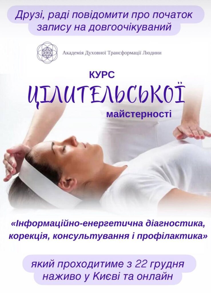 В Рамах співпраці з Академією Духовної Трансформації Людіні запрошуємо на винятковий Курс Цмлительської Майстерності "Інформаційно-енергетична диагностика, корекція, консультування та профілактика» 📆 Дати проведення курсу: І…